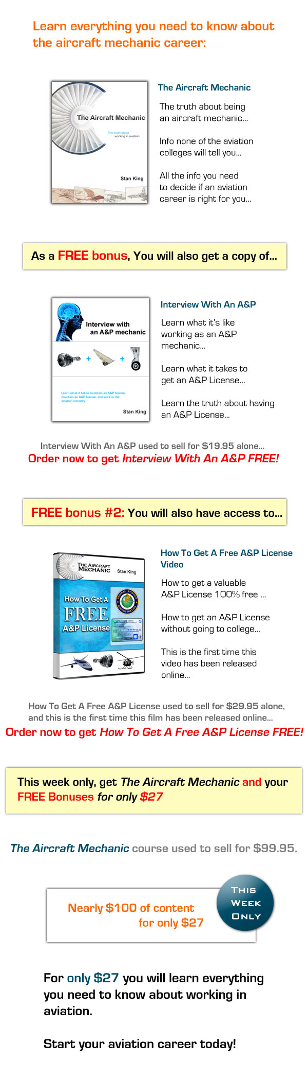 The Aircraft Mechanic will help you decide if this is the career for you, and the methods I am going to share with you will allow you to get into the career quickly and get an A&P License for free.